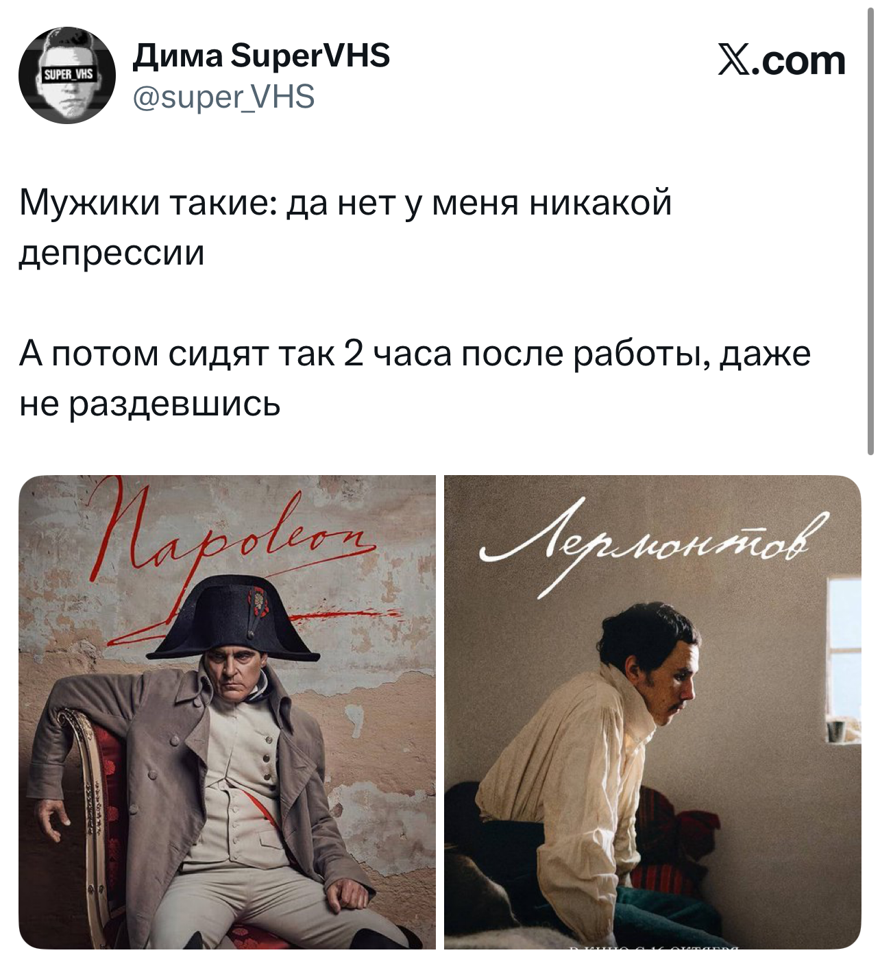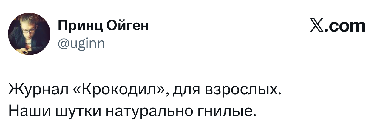 Вот уже несколько лет все мы живем в «исторические времена». Единственное, что нас отвлекает, — это юмор, в том числе шутки из «Твиттера» (X). Русскоязычные пользователи каждый день выходят в эту лаконичную соцсеть, преодолевая запреты и блокировки, чтобы потешить самих себя и друг друга. А мы в MAXIM каждый будний день неустанно несем вахту, собирая их лучшие текстово-визуальные юморески.