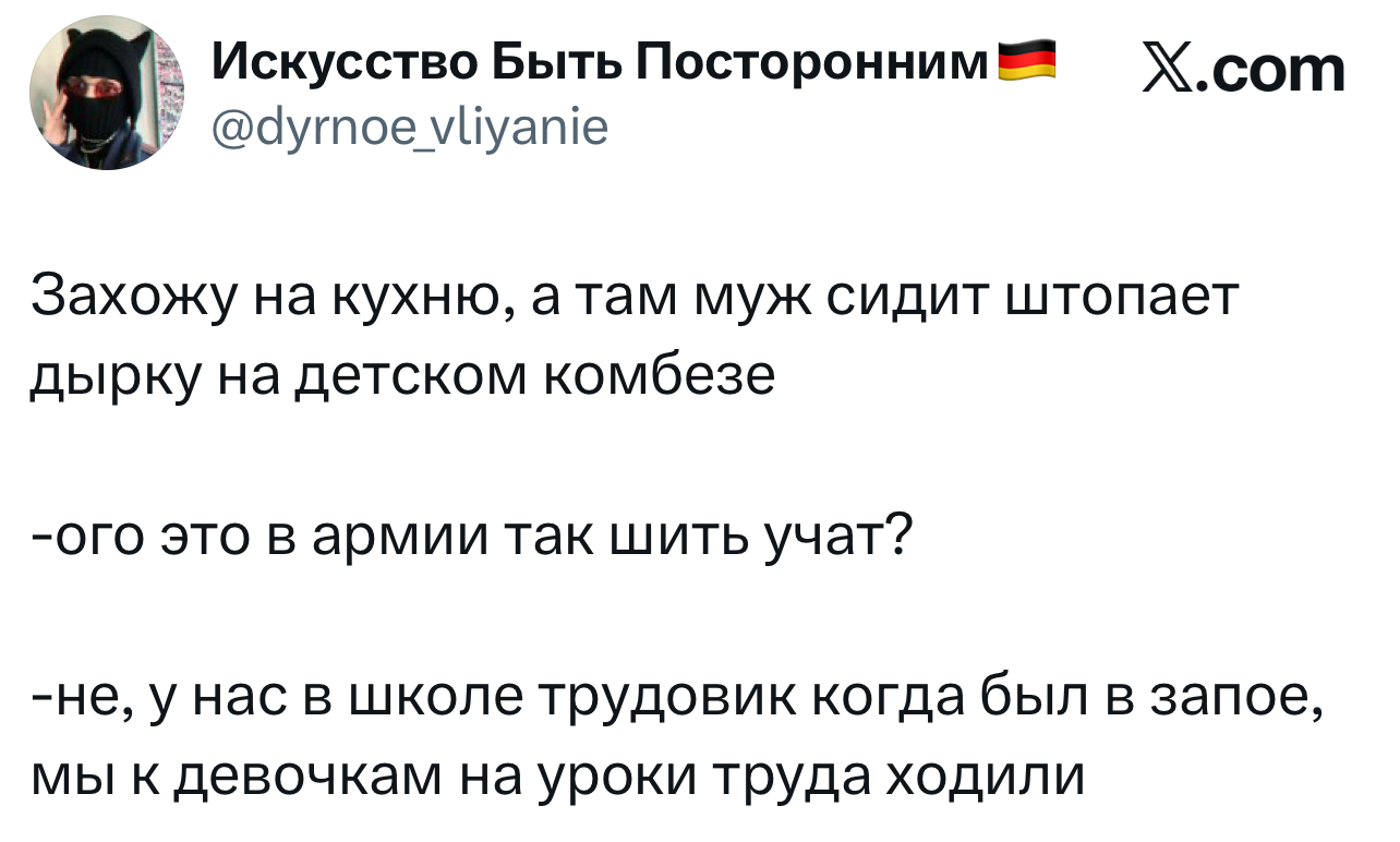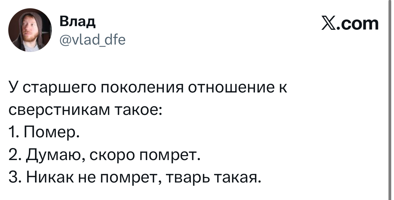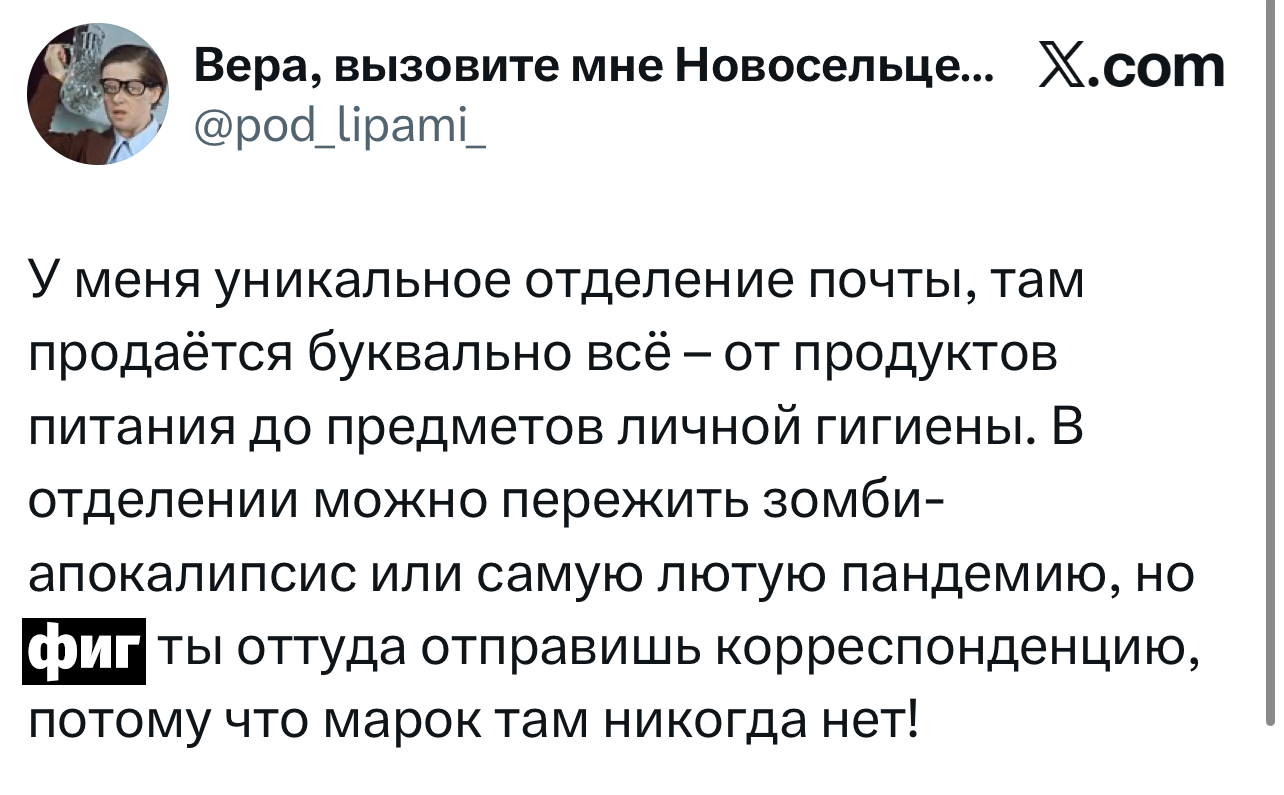 Вот уже несколько лет все мы живем в «исторические времена». Единственное, что нас отвлекает, — это юмор, в том числе шутки из «Твиттера» (X). Русскоязычные пользователи каждый день выходят в эту лаконичную соцсеть, преодолевая запреты и блокировки, чтобы потешить самих себя и друг друга. А мы в MAXIM каждый будний день неустанно несем вахту, собирая их лучшие текстово-визуальные юморески.
