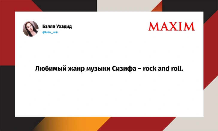 Вот уже несколько лет все мы живем в «исторические времена». Единственное, что нас отвлекает, — это юмор, в том числе шутки из «Твиттера» (X). Русскоязычные пользователи каждый день выходят в эту лаконичную соцсеть, преодолевая запреты и блокировки, чтобы потешить самих себя и друг друга. А мы в MAXIM каждый будний день неустанно несем вахту, собирая их лучшие текстово-визуальные юморески.