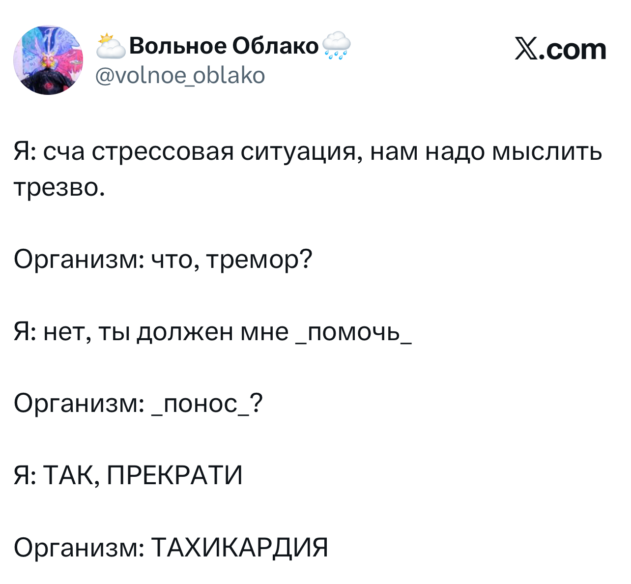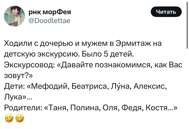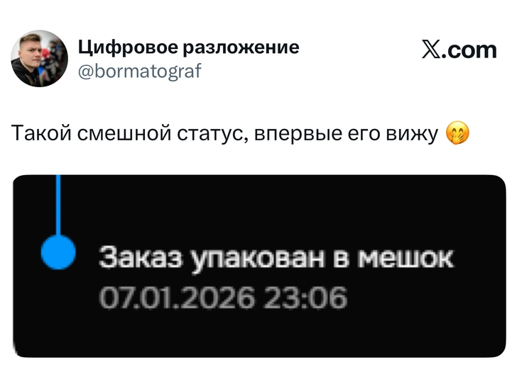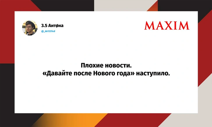 Вот уже несколько лет все мы живем в «исторические времена». Единственное, что нас отвлекает, — это юмор, в том числе шутки из «Твиттера» (X). Русскоязычные пользователи каждый день выходят в эту лаконичную соцсеть, преодолевая запреты и блокировки, чтобы потешить самих себя и друг друга. А мы в MAXIM каждый будний день неустанно несем вахту, собирая их лучшие текстово-визуальные юморески.