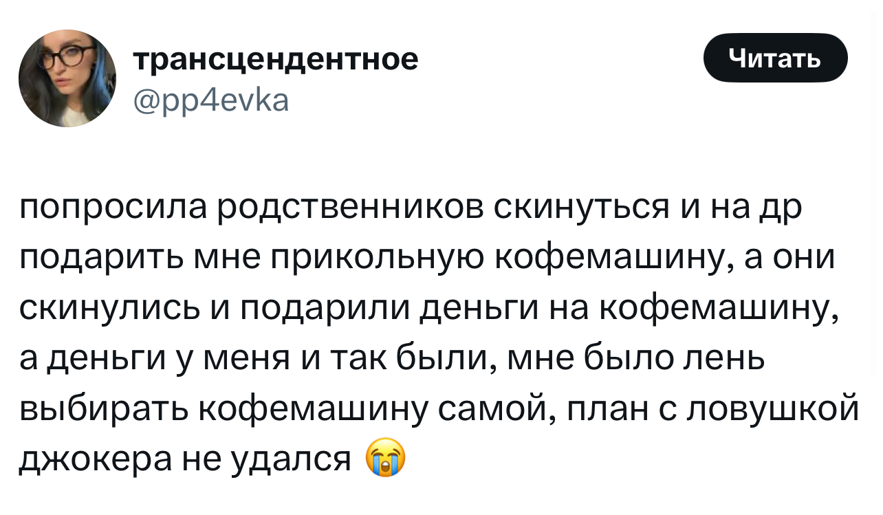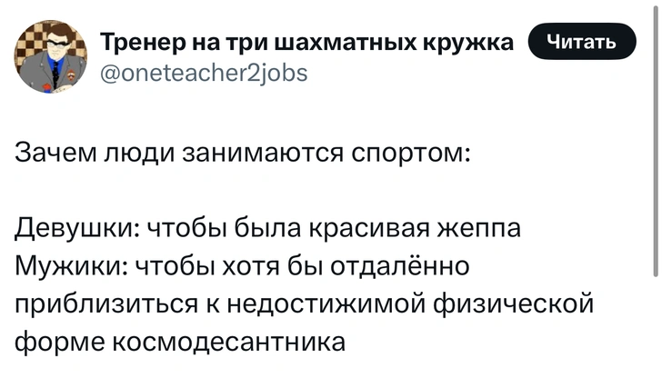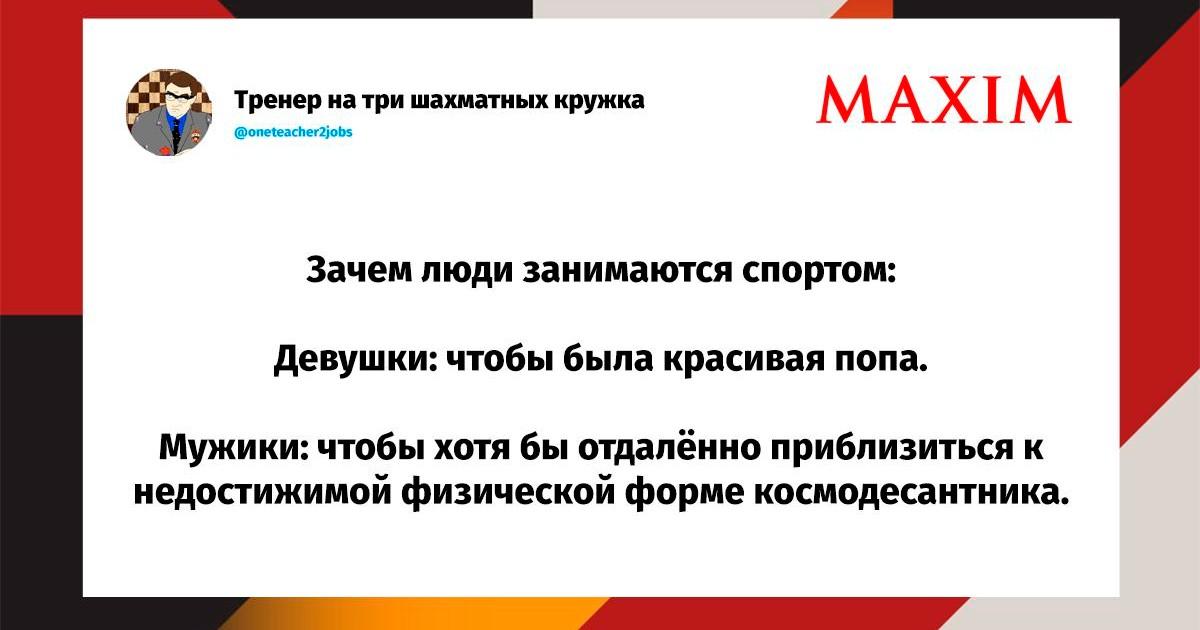 Вот уже несколько лет все мы живем в «исторические времена». Единственное, что нас отвлекает, — это юмор, в том числе шутки из «Твиттера» (X). Русскоязычные пользователи каждый день выходят в эту лаконичную соцсеть, преодолевая запреты и блокировки, чтобы потешить самих себя и друг друга. А мы в MAXIM каждый будний день неустанно несем вахту, собирая их лучшие текстово-визуальные юморески.
