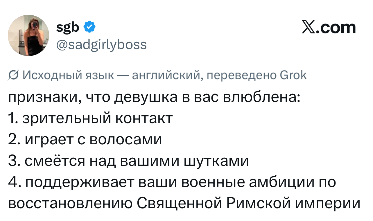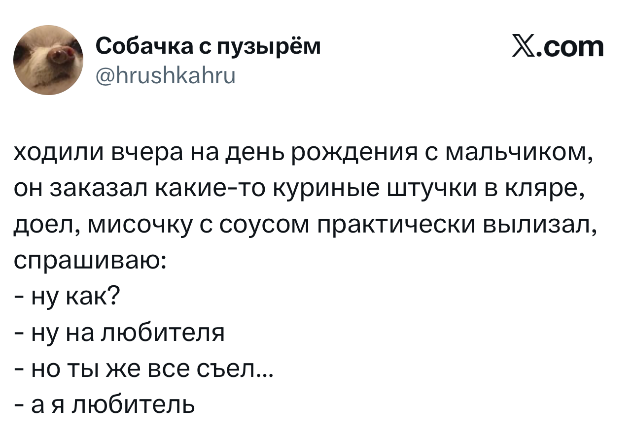 Вот уже несколько лет все мы живем в «исторические времена». Единственное, что нас отвлекает, — это юмор, в том числе шутки из «Твиттера» (X). Русскоязычные пользователи каждый день выходят в эту лаконичную соцсеть, преодолевая запреты и блокировки, чтобы потешить самих себя и друг друга. А мы в MAXIM каждый будний день неустанно несем вахту, собирая их лучшие текстово-визуальные юморески.