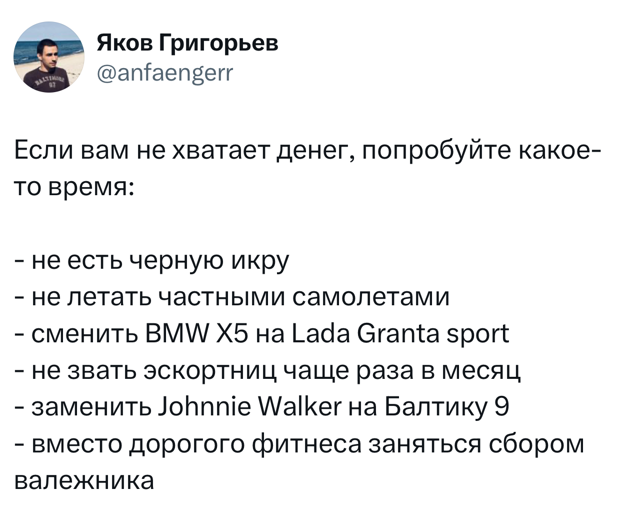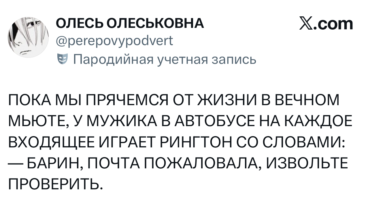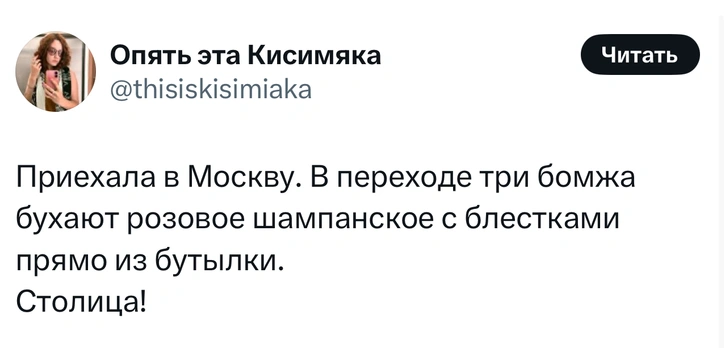 Вот уже несколько лет все мы живем в «исторические времена». Единственное, что нас отвлекает, — это юмор, в том числе шутки из «Твиттера» (X). Русскоязычные пользователи каждый день выходят в эту лаконичную соцсеть, преодолевая запреты и блокировки, чтобы потешить самих себя и друг друга. А мы в MAXIM каждый будний день неустанно несем вахту, собирая их лучшие текстово-визуальные юморески.