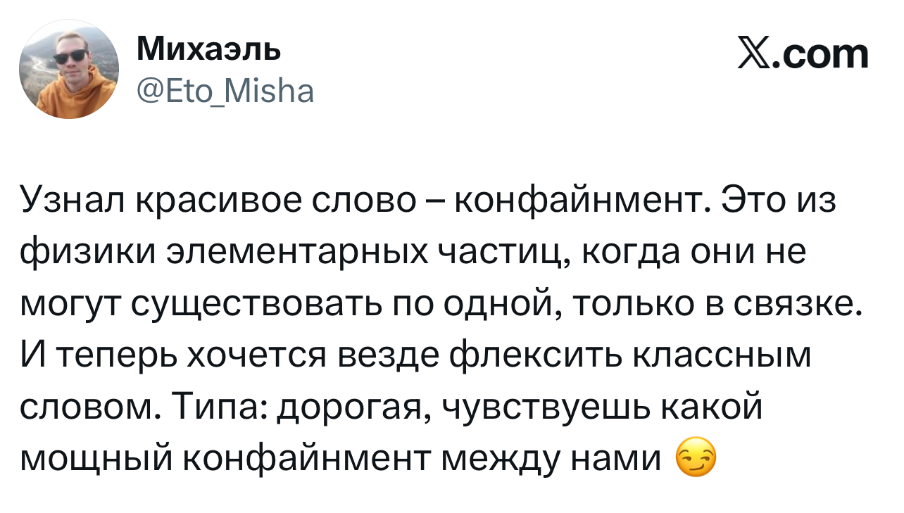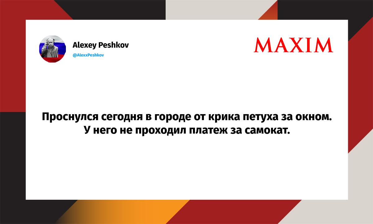 Вот уже несколько лет все мы живем в «исторические времена». Единственное, что нас отвлекает, — это юмор, в том числе шутки из «Твиттера» (X). Русскоязычные пользователи каждый день выходят в эту лаконичную соцсеть, преодолевая запреты и блокировки, чтобы потешить самих себя и друг друга. А мы в MAXIM каждый будний день неустанно несем вахту, собирая их лучшие текстово-визуальные юморески.