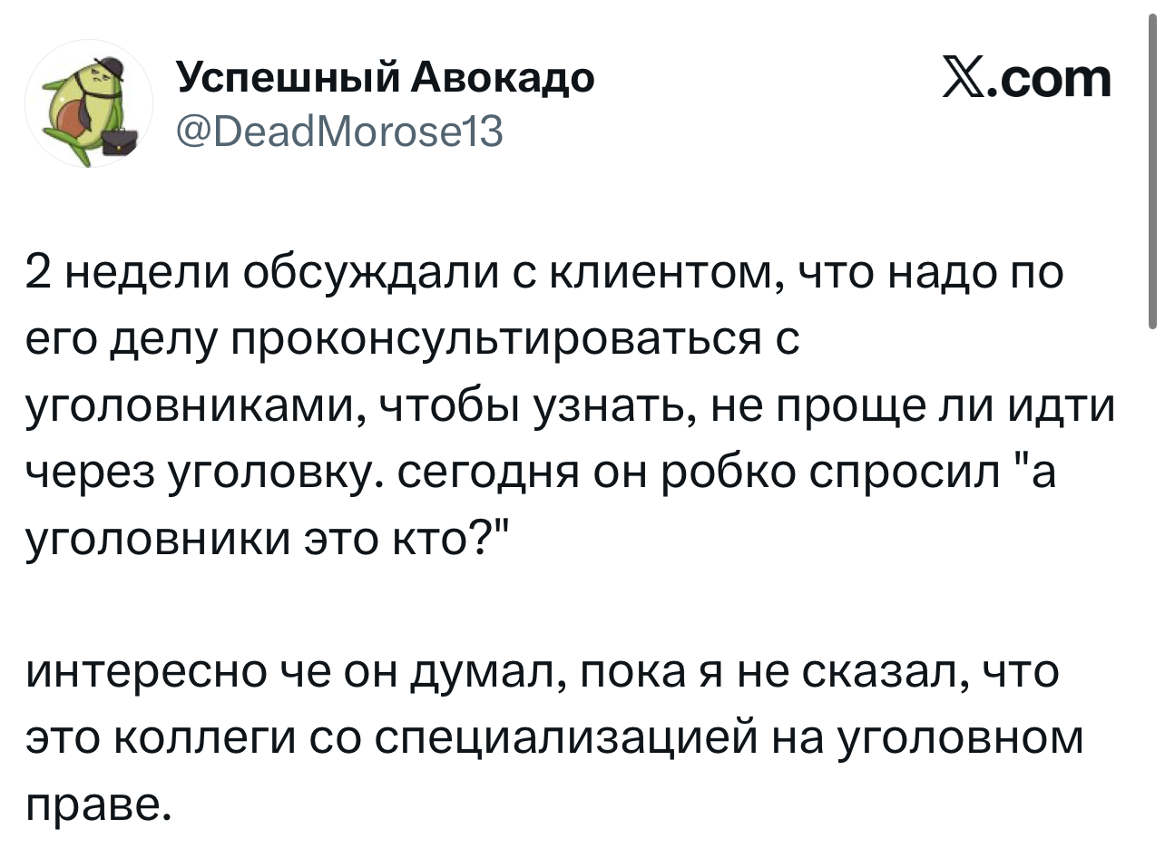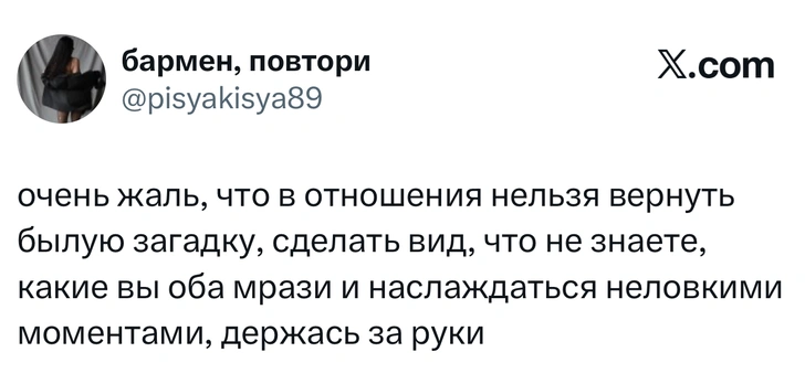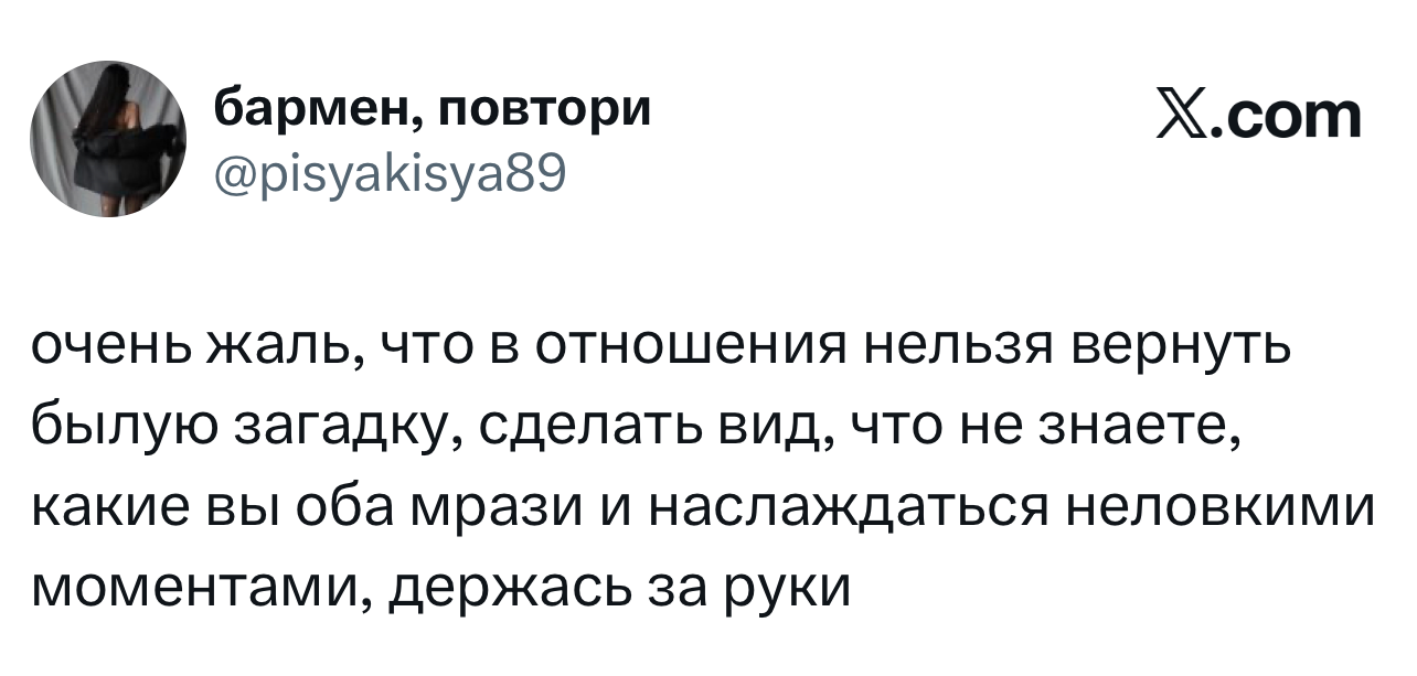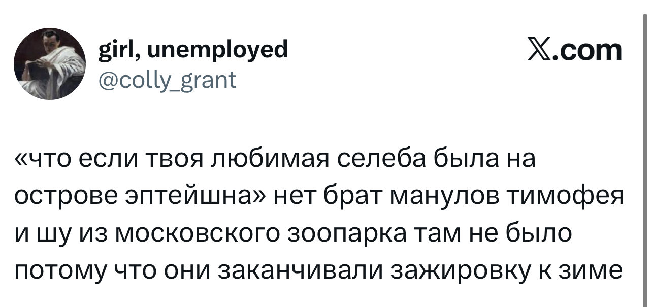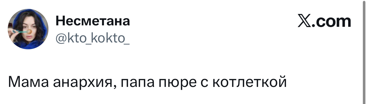 Вот уже несколько лет все мы живем в «исторические времена». Единственное, что нас отвлекает, — это юмор, в том числе шутки из «Твиттера» (X). Русскоязычные пользователи каждый день выходят в эту лаконичную соцсеть, преодолевая запреты и блокировки, чтобы потешить самих себя и друг друга. А мы в MAXIM каждый будний день неустанно несем вахту, собирая их лучшие текстово-визуальные юморески.