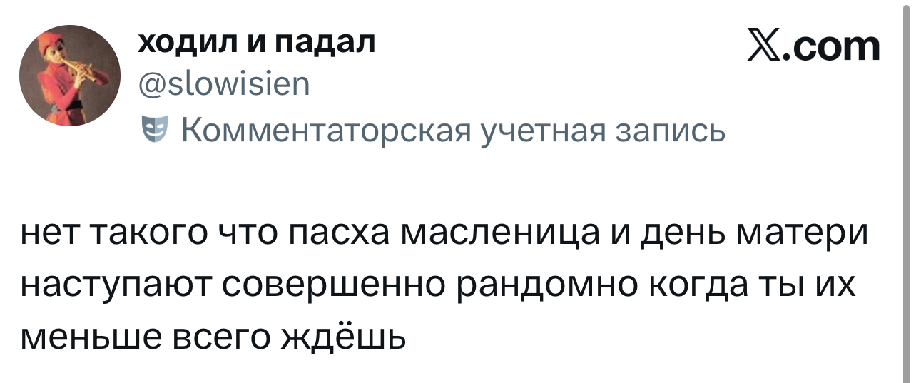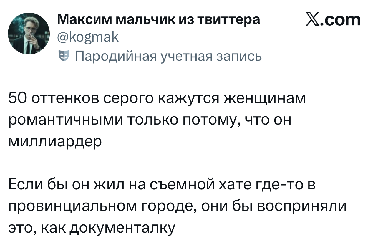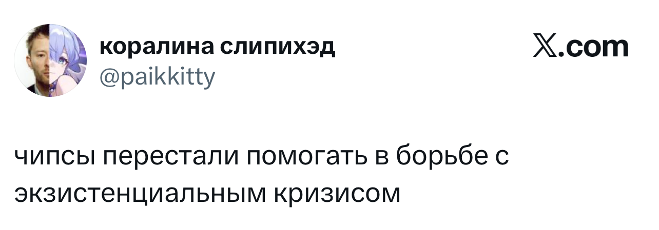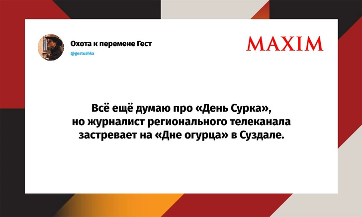Вот уже несколько лет все мы живем в «исторические времена». Единственное, что нас отвлекает, — это юмор, в том числе шутки из «Твиттера» (X). Русскоязычные пользователи каждый день выходят в эту лаконичную соцсеть, преодолевая запреты и блокировки, чтобы потешить самих себя и друг друга. А мы в MAXIM каждый будний день неустанно несем вахту, собирая их лучшие текстово-визуальные юморески.