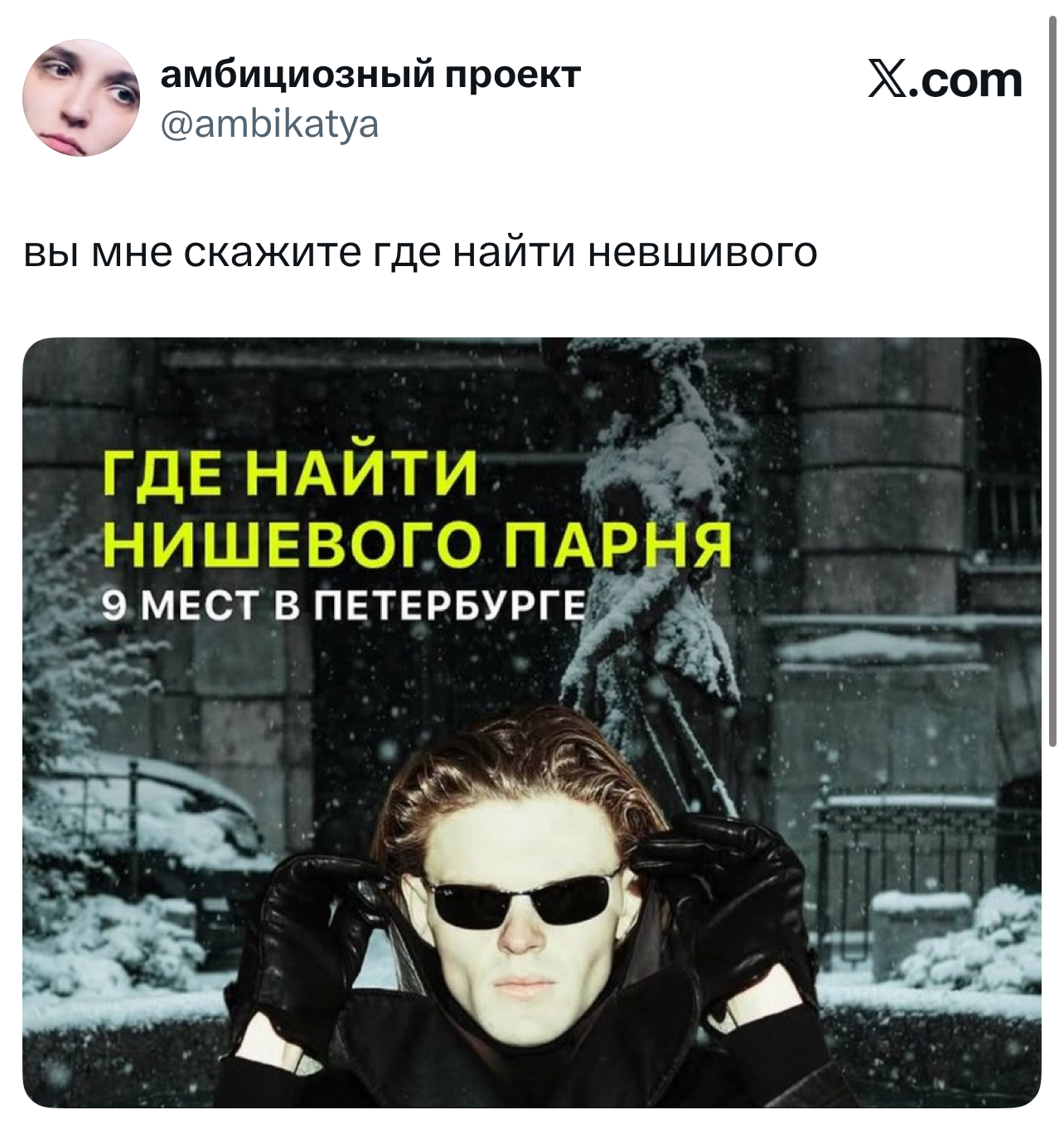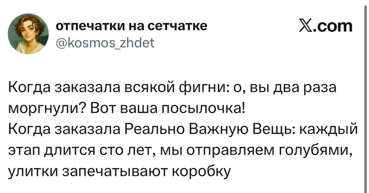 Вот уже несколько лет все мы живем в «исторические времена». Единственное, что нас отвлекает, — это юмор, в том числе шутки из «Твиттера» (X). Русскоязычные пользователи каждый день выходят в эту лаконичную соцсеть, преодолевая запреты и блокировки, чтобы потешить самих себя и друг друга. А мы в MAXIM каждый будний день неустанно несем вахту, собирая их лучшие текстово-визуальные юморески.