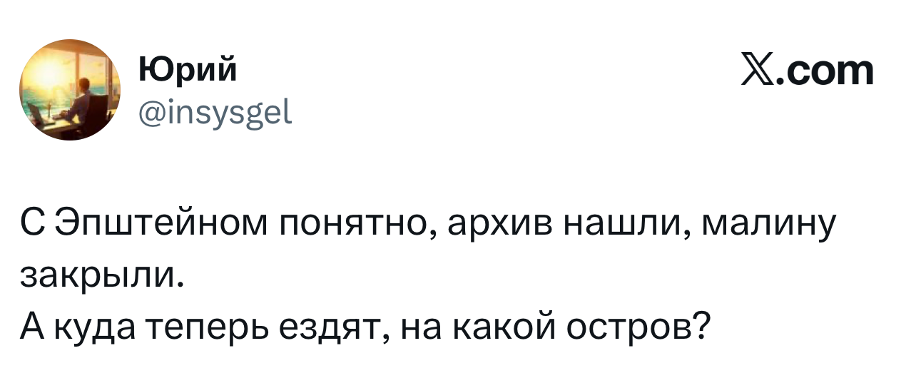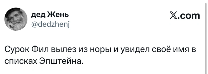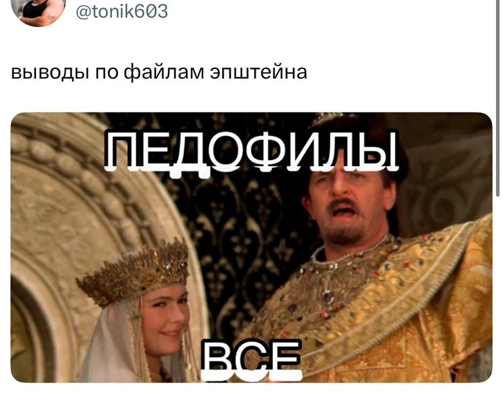 Для тех, кто недавно вышел из комы: Джеффри Эпштейн — американский финансист, которого обвиняли в сексуальной эксплуатации несовершеннолетних и секс-траффикинге. В 2019 году федеральные прокуроры предъявили ему обвинения, но он умер в тюрьме, а его смерть признали самоубийством. Соучастницу Эпштейна Гислейн Максвелл суд признал виновной, позже ей назначили 20 лет тюрьмы.
