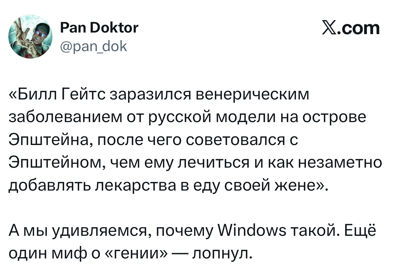 19 декабря 2025 года минюст США начал выкладывать «файлы Эпштейна». В первой части пользователи насчитали более 13 тысяч документов, в которых засветились мировые селебрити. 1 февраля 2026 года минюст США опубликовал еще более 3 миллионов файлов уголовного дела, от которых даже у самых хладнокровных пользователей появились седые волосы. Потому что в них нашлись не только упоминания всем известных миллиардеров и прочих знаменитостей, а также некоторые подробности о их гнусностях и мерзостях. Каких именно — читайте по ссылкам в конце этой статьи.