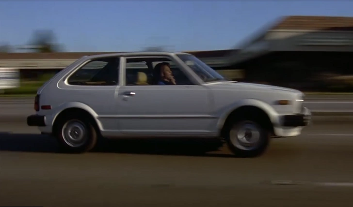 Крохотный, особенно на фоне американских седанов (3730 мм), легкий (780 кг), шустрый и экономичный, с 1.5-литровым двигателем и пятиступенчатой МКП (также ставили двухступенчатые «автоматы», но у машины в фильме — «механика»). А самое забавное, что это тот же самый автомобиль, который разбили на съемках «Криминального чтива».