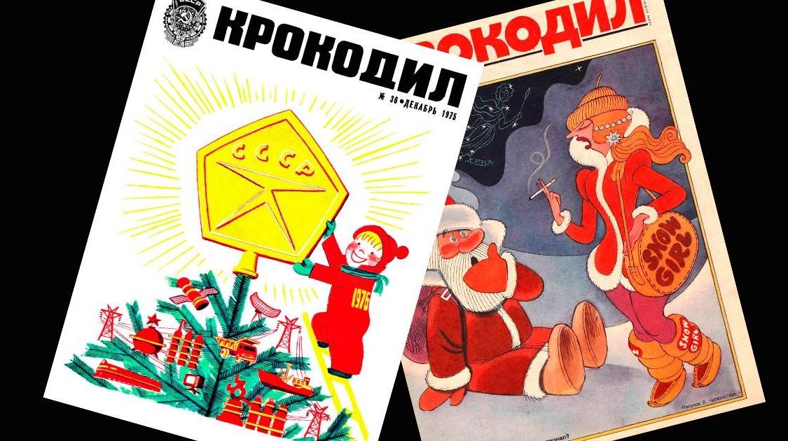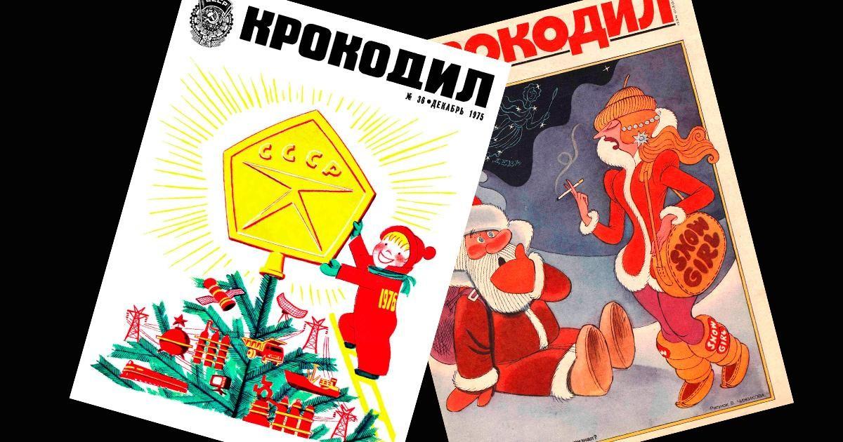 Обложки «Крокодила» не обязаны были быть смешными, однако обязаны были отображать дух времени. Особенно в Новый год, когда страна героически планировала год следующий. Праздник и в самом деле для граждан был отрадный и веселый, хотя бюрократы и пытались изо всех сил его формализовать и превратить в скучное идейное торжество. Этому, в частности, посвящена комедия Эльдара Рязанова с молодой Людмилой Гурченко. Однако мы отвлеклись, вас ждет главная витрина советского Нового года — обложки журнала «Крокодил» не такой уж и давней эпохи.