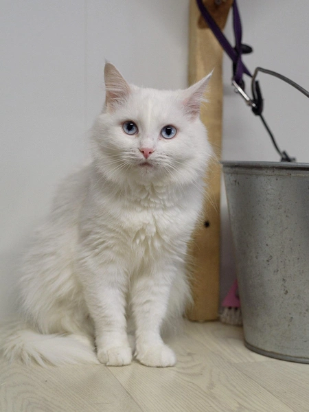 Никогда еще выражение «белая и пушистая» не было так актуально! Ведь Снежинка, ждущая своих людей в приюте «Бирюлево», белая и пушистая не только снаружи, но и внутри. Хотя, конечно, в первую очередь замечаешь потрясающую красоту Снежинки. Ценители белых кошек, едва завидев Снежинку, восхищенно вздыхают и хватаются за переноску.