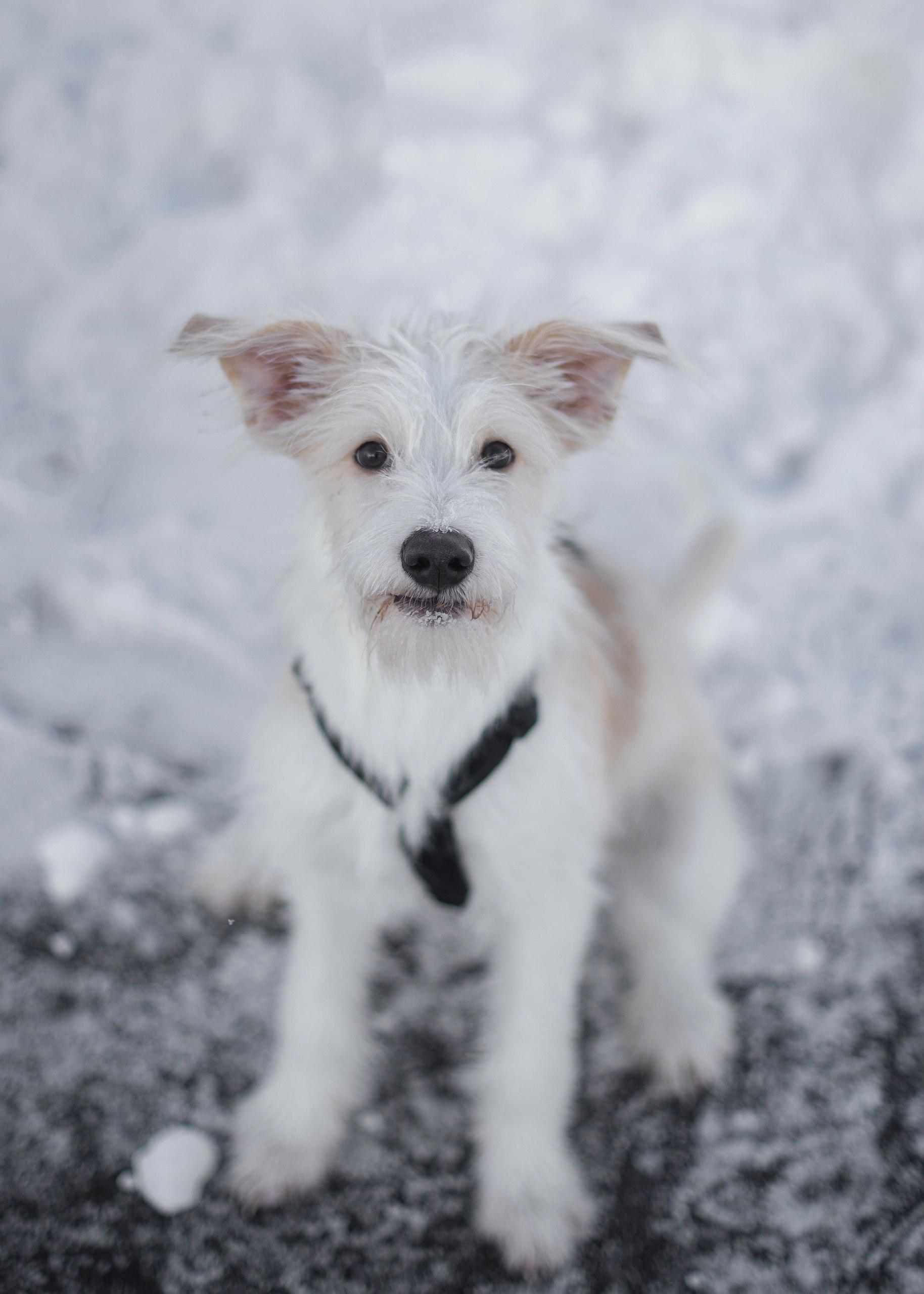 А прямо сейчас мы познакомим вас с белоснежными героями «Котопса» этой морозной зимней недели. Щенок Оззи вырывается вперед и машет хвостом — с него и начнем!