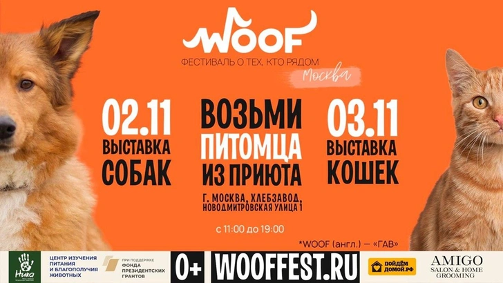 Гадаете, как провести длинные выходные с удовольствием и пользой? У нас есть ответ — Woof! Легендарный фестиваль-пристройство животных из приютов Woof состоится 2 и 3 ноябре на столичном «Хлебозаводе» по адресу Новодмитровская улица, 1, стр. 17, пространство «Бойлерная».