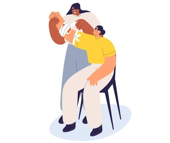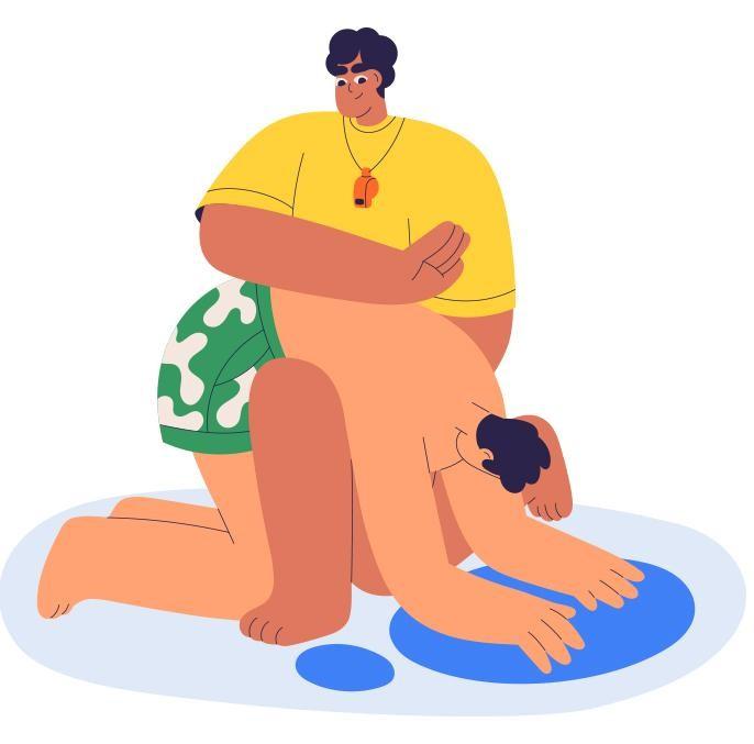 Как правильно? Если человек может дышать, не трогайте его. А вот когда на вопрос «Ты можешь дышать?» он отрицательно мотает головой или вообще ничего не отвечает, нужно помочь ему согнуться так, чтобы спина была параллельна полу, и раз пять очень сильно хлопнуть открытой ладонью по центру спины.