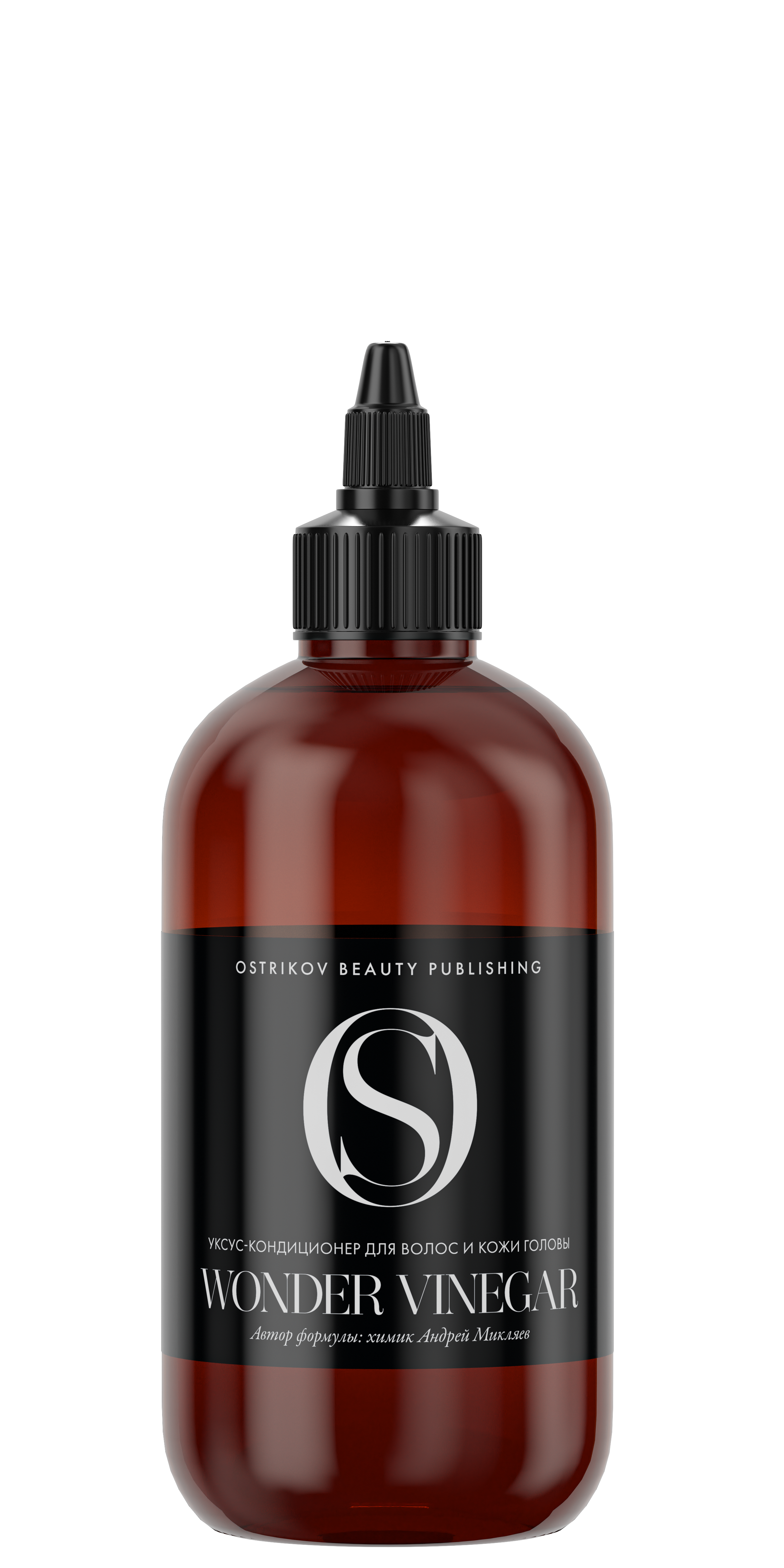 Уксус — еще один натурпродукт, известный своими полезными свойствами для кожи головы. Кислая среда помогает нормализовать pH, выровнять баланс жирности и сухости, к тому же пряди становятся блестящими и покладистыми за счет смыкания кератиновых чешуек, выстилающих поверхность волоса. К счастью, сегодня не надо поливать голову уксусом. Нужный эффект обеспечит уксус-кондиционер для волос и кожи головы Wonder Vinegar», Ostrikov Beauty Publishing. Он нейтрализует остатки щелочи после использования шампуня и жесткость воды, слегка отшелушивает кожу, надолго сохраняет свежесть и ощущение безупречной чистоты. Используется как обычный кондиционер или бальзам-ополаскиватель. Пахнет не заправкой для салата, а цитрусовым фрешем.