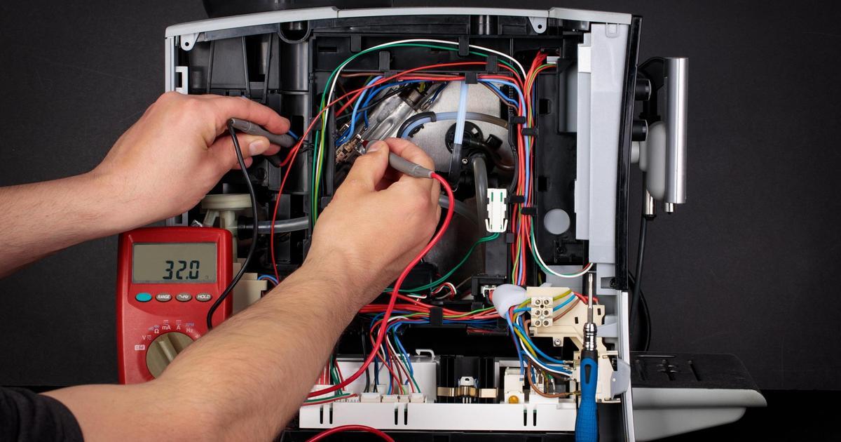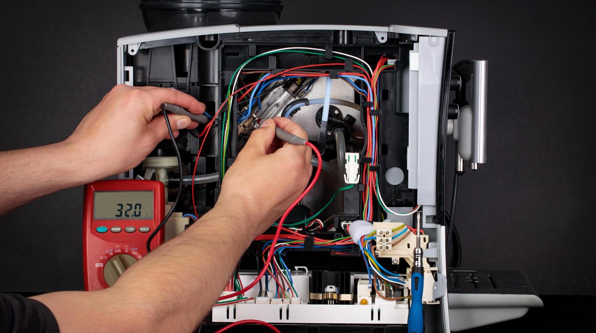 Далее Егор проводит диагностику электрической составляющей кофемашины с помощью мультиметра, но, по его словам, при его отсутствии можно просто «пройтись глазами» и отыскать недочеты и поломки самостоятельно.