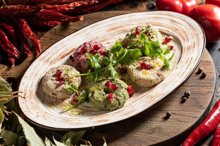 Принцип приготовления простой: по отдельности отварите ингредиенты, измельчите их в блендере или мясорубке, добавьте к получившимся нежным пастам грецкий орех, лук, чеснок, соль и специи. Сформируйте разноцветные шарики, украсьте их так, как решит ваша фантазия, например орехами, веточками свежей мяты.