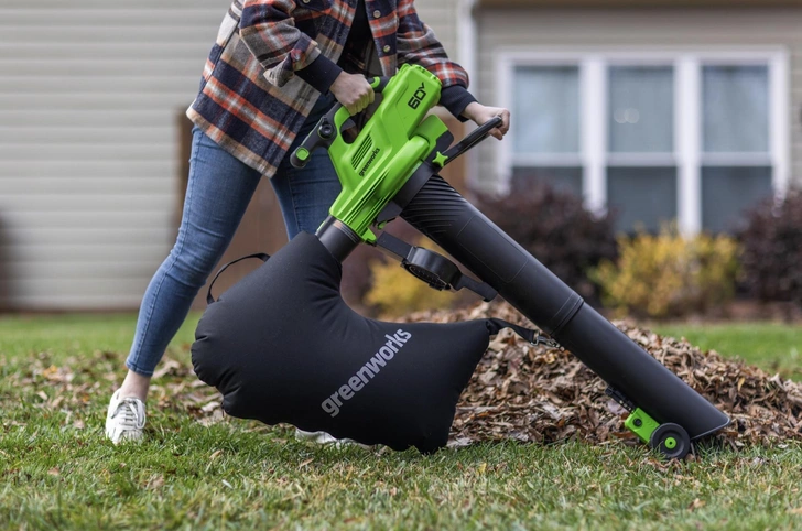 Тут на помощь приходит аккумуляторная воздуходувка-пылесос Greenworks GD60BVII — мощная и экологичная альтернатива бензиновым аналогам.