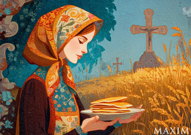Самые крутые детали: первый блин часто посвящали покойникам. Не «комом», а специально разрывали руками (ножом нельзя, слишком цивилизованно), клали на окно, на божницу или прямо на кладбище. В некоторых местах вешали на яблоню: «Родители придут поесть». Нищим раздавали — они как посредники между мирами. А на юге и в Белоруссии это звали «Деды»: кашу варили, водку ставили, звали предков к столу.