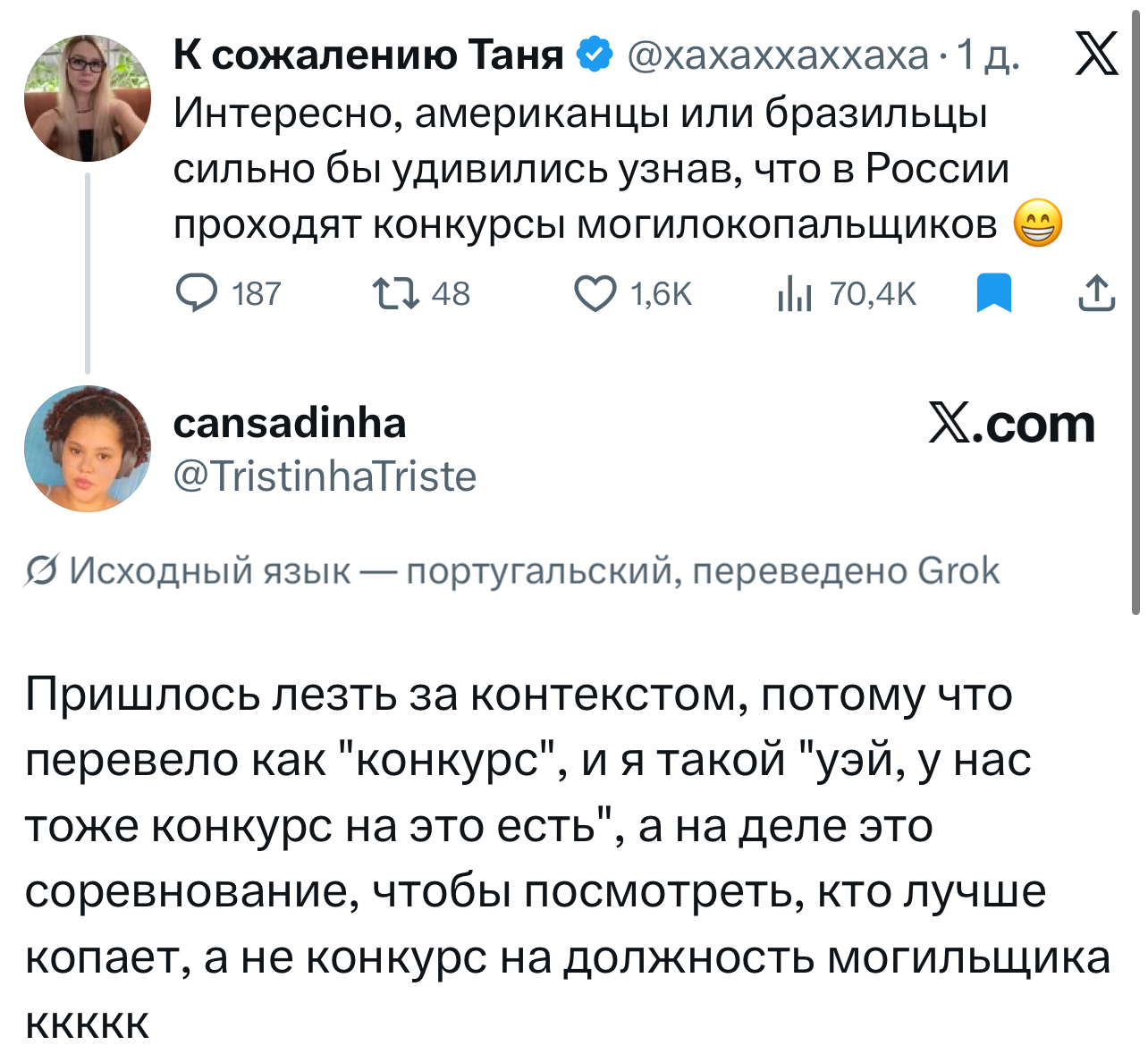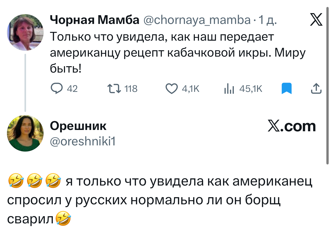И это лишь крохотная часть того, что сейчас происходит в «Твиттере»! Благодаря автопереводу в мгновение ока эта соцсеть из супертоксичной стала самой милой, где все со всеми любезничают. Потому что, как оказалось, адекватных и добрых пользователей намного больше, чем злобных политиков, которые хотят всех рассорить.