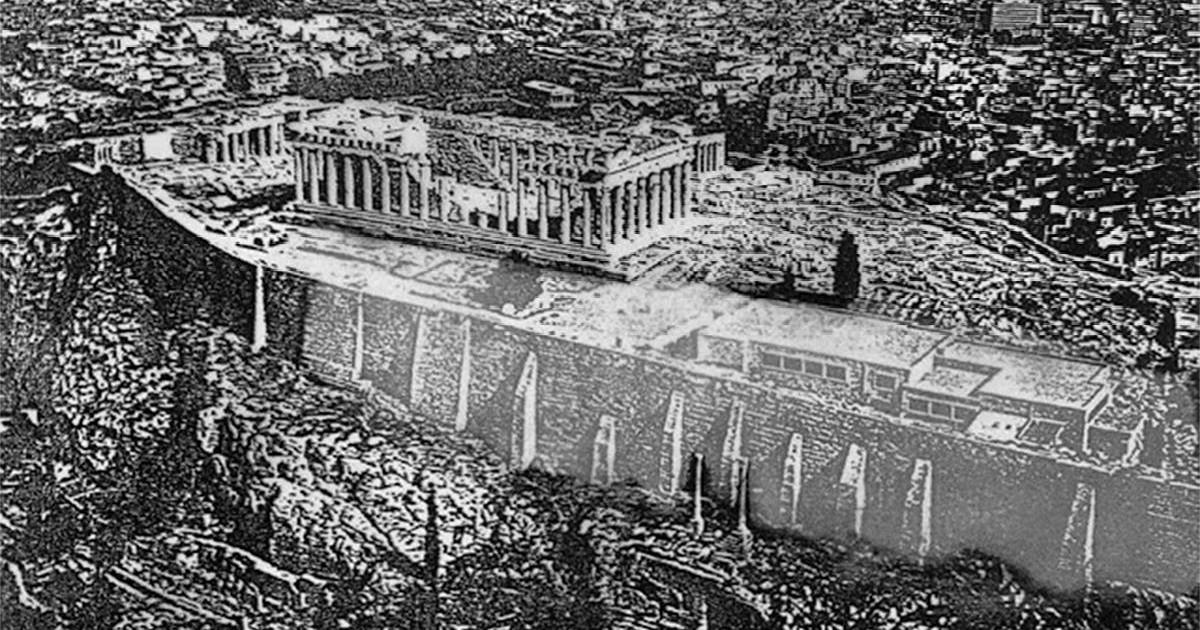 Дело в том, что на месте нынешнего Парфенона (местные археологи зовут его Парфенон III) изначально замышлялось построить совершенно иной проект — гигантский Парфенон II. Однако из-за войны с Персией древние греки не потянули столь колоссальных размеров стройку и построили привычный нам «маленький Парфенон». Зато под ним остался фундамент для большого Парфенона!