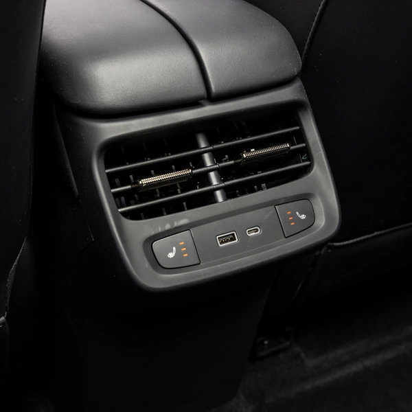 Чтобы откинуть спинки второго ряда и тем самым увеличить объем грузового отсека, придется заглянуть в салон. Он черный, как в нашем случае, значит, немаркий. За спиной водителя места навалом, особенно в области коленей. Над головой тоже полно «воздуха», и это несмотря на наличие панорамной крыши. К услугам здешних седоков — трехступенчатый подогрев дивана, центральный подлокотник с парочкой подстаканников, два USB-гнезда (одно для Type-C), дефлекторы системы вентиляции и мягкая отделка дверных карт.