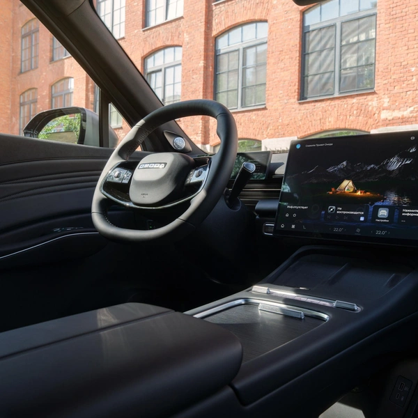 Под экраном площадка для зарядки двух смартфонов (левая секция — на 50 Вт), на центральном тоннеле — подстаканники с нишей для портмоне, а бокс в переднем подлокотнике оснащен подсветкой и системой охлаждения. Цокольный этаж — это обилие свободного места с 12-вольтовой розеткой со стороны водителя и двумя USB-портами со стороны пассажира. Руль двухспицевый, приплюснутый сверху и снизу, в стиле игровой приставки. Сразу видно, на кого ориентирован автомобиль (целевая аудитория — 30+ лет). У него четыре клавиши управления и вращающиеся барабанчики — очень даже оригинальная конструкция.