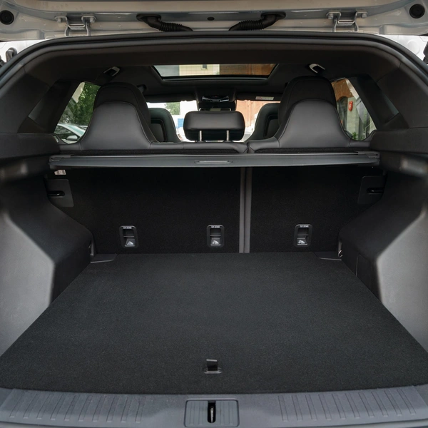 Вообще, в вопросах безопасности у Omoda C7 ученая степень. Здесь тебе и высокопрочный кузов с усиленным каркасом, и семь подушек безопасности, и комплекс ADAS, и система кругового обзора 540 градусов — в общем, много чего полезного. Плюс, естественно, акцент на комфорт и практичность. В багажник вмещается 639 литров полезного скарба. Порога, через который надо перекидывать вещи, нет, погрузочная высота оптимальная, присутствуют откидные крючки, мощные такелажные петли, шторка, лампочка освещения и розетка 12 В. В подполье — полноразмерная «запаска» и органайзер.