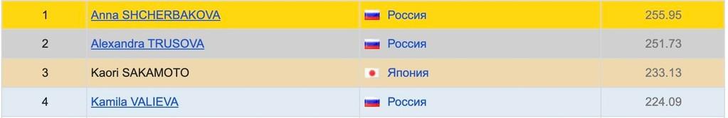 Если сравнить оценки, полученные чемпионами по фигурному катанию в 2022 и 2026 году, становится понятно, что золотая медаль подешевела почти на 30 баллов. В 2022 году российская фигуристка Анна Щербакова победила, набрав 255,95 балла, Александра Трусова забрала серебро с оценкой в 251,73 балла, а японка Каори Сакамото заняла третье место с 233,13 балла.