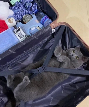 Умилительные… то есть убедительные фотодоказательства того, что главное — взять с собой кота, а паспорт, бельишко, голову и сам чемодан можно дома забыть!