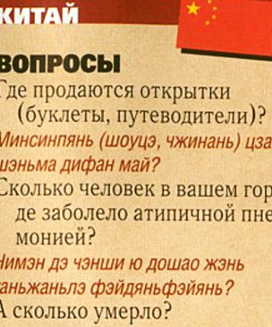 РазвлеченияЮмористический русско-китайский разговорник 2003 года снова стал актуален в связи с коронавирусом 2019-го
