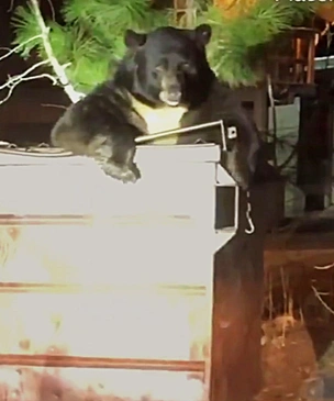 ИсторииМедведь застрял в мусорном баке и позвал на помощь полицейских (видео)